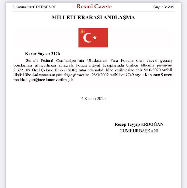 Turki Lunasi Hutang Somalia ke IMF yang Telah Jatuh Tempo Sebesar 3 5